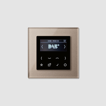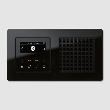 Einbauradio im Schalterdesign: Das JUNG Smart Radio DAB+ ist optisch und technisch ein Highlight. Es wird, wie ein Lichtschalter, ganz einfach in der Wand installiert – platzsparend und ohne lästiges Kabelgewirr im Raum. Das Smart Radio empfängt Programme über DAB+ sowie via UKW-Frequenz und speichert bis zu acht Sender pro Empfangsmodus. In der Variante mit Bluetooth lässt es sich außerdem mit Smartphone und Tablet koppeln. So streamen Sie die eigene Playlist oder Hörbücher, ohne erst nach dem passenden Sender suchen zu müssen. Bedient wird das Radio über ein elegantes Touchdisplay mit Glasfront. Erhältlich in den vielfältigen Rahmen im JUNG Design lässt es sich optimal an die übrige Elektroinstallation anpassen.
